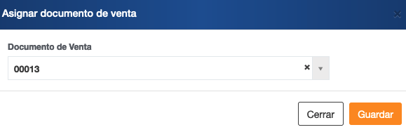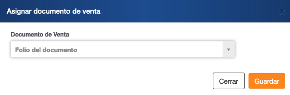 En esta ventana se mostrará el folio de la última venta que se asignó a su orden de compra, usando la X que se muestra a la derecha del folio puede eliminar el folio o haciendo clic en el campo de Documento de venta puede elegir un nuevo folio de documento de venta y guardar.