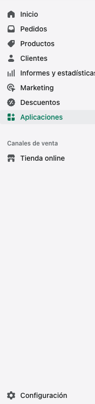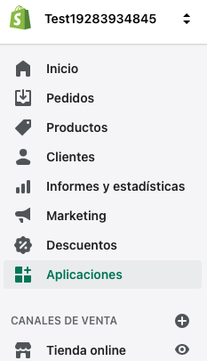 4.-Para encontrar los datos que se deben de llenar en el paso No.-3 tendremos que ingresar a nuestra tienda de Shopify y entrar en aplicaciones.
