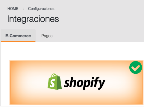 2.- En la ventana de integraciones, aparecerán las tiendas a las cuales nos podemos integrar con nuestro sistema Wizerp, en esta ocasión daremos click en la opción de Shopify.