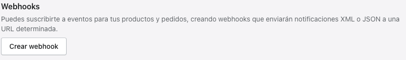 10.- Esto nos mostrará las opciones para configurar los webhooks en Shopify en la cual deberemos de ingresar los datos que obtendremos en los pasos del No.-16 al No.-21