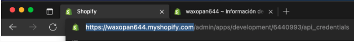6.1.-En el campo de URL de tu tienda en Shopify, este puede ser tomado de la barra de direcciones de su navegador como se muestra en el ejemplo.