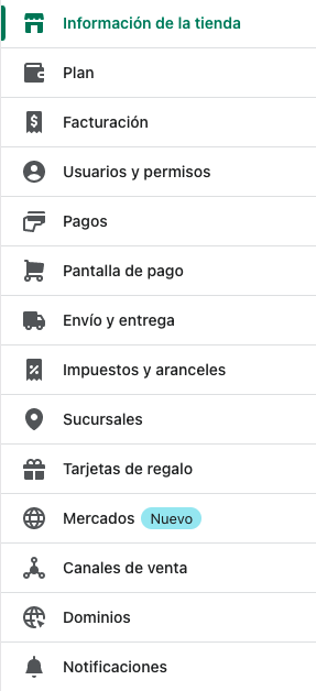12.- Ahora desde la tienda de Shopify usar el engranaje de configuración que se encuentra en la esquina inferior derecha de su página en Shopify.